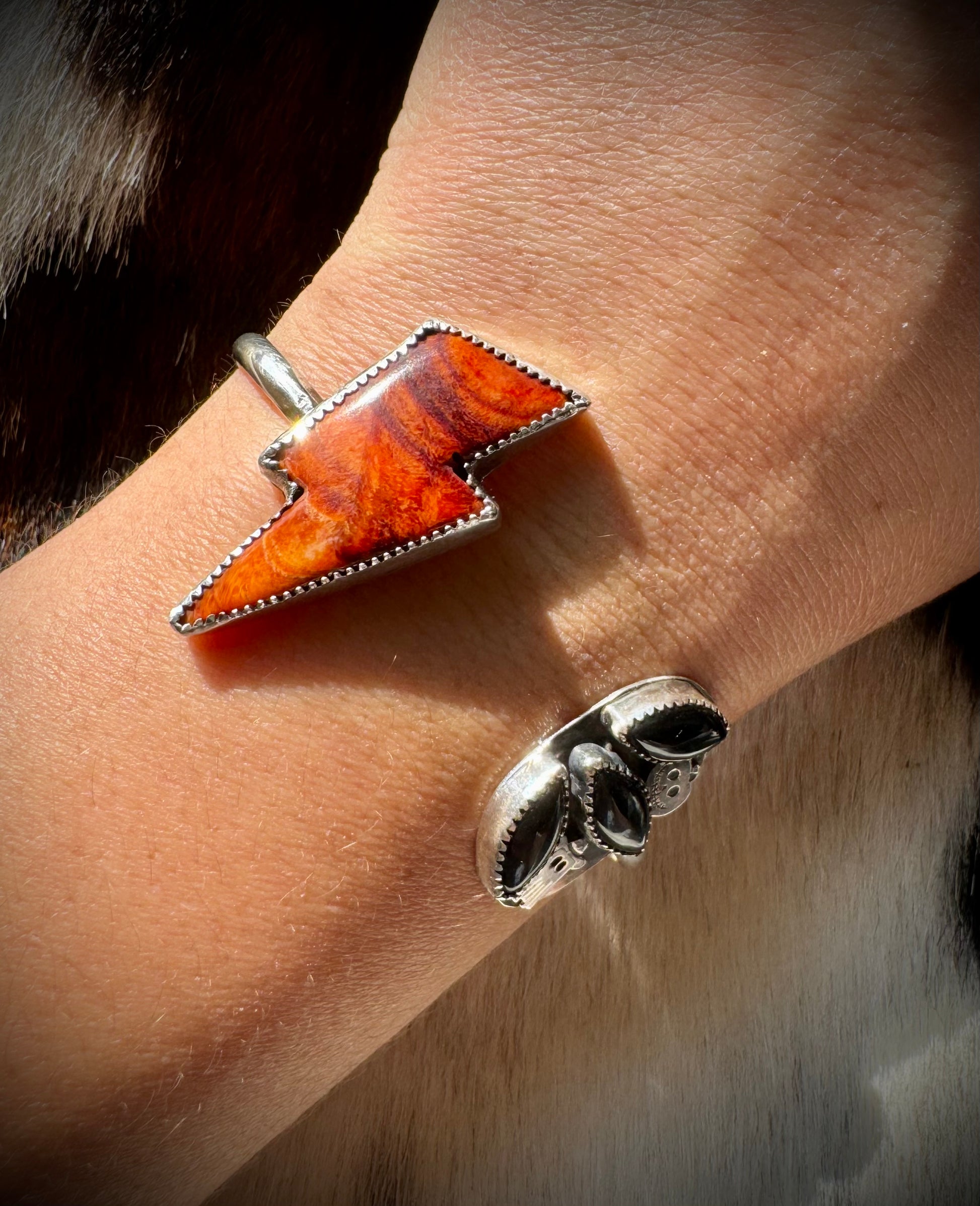 Spiny Oyster Bolt & Black Onyx Cuff with sterling silver Halloween accents.