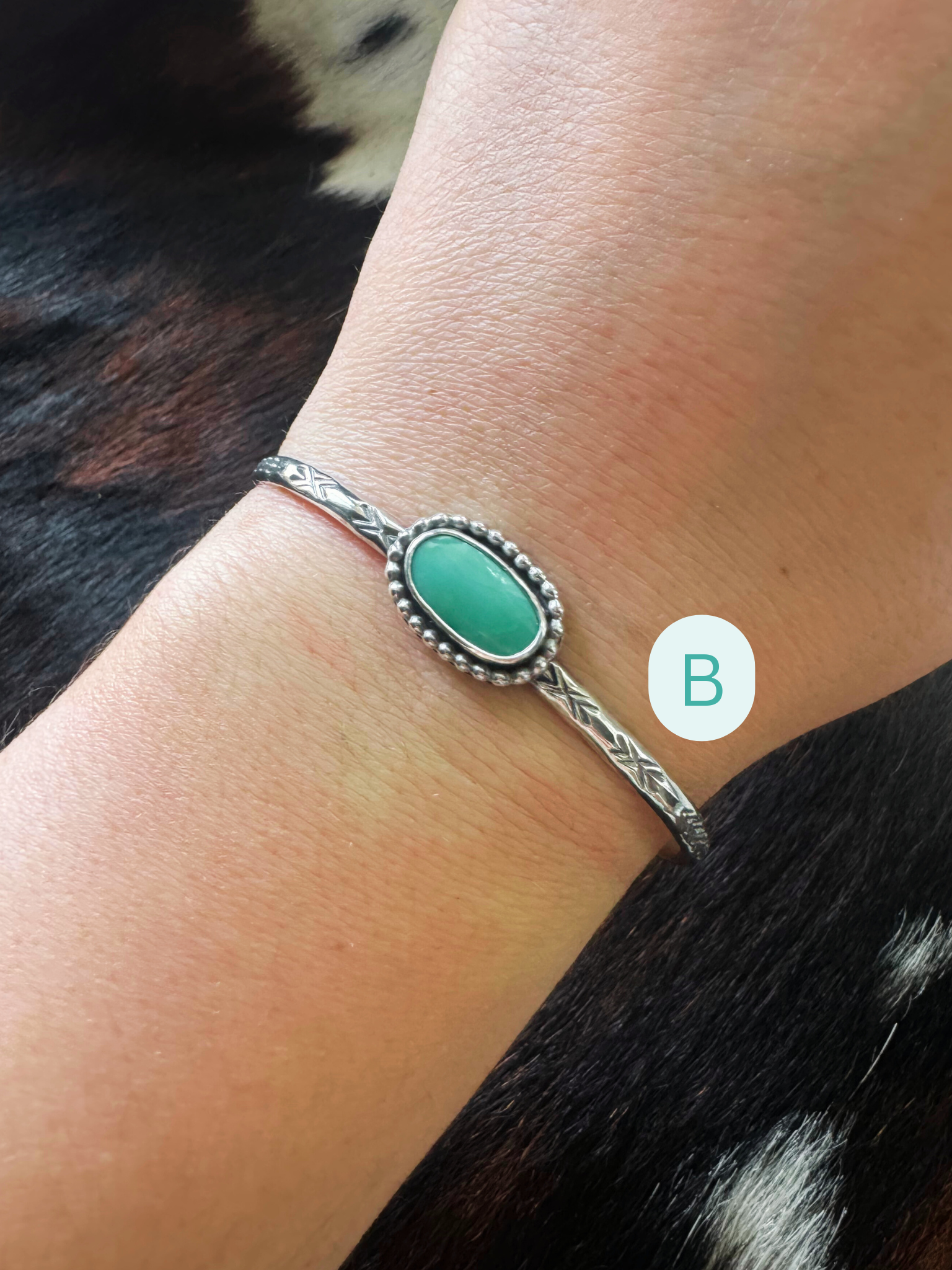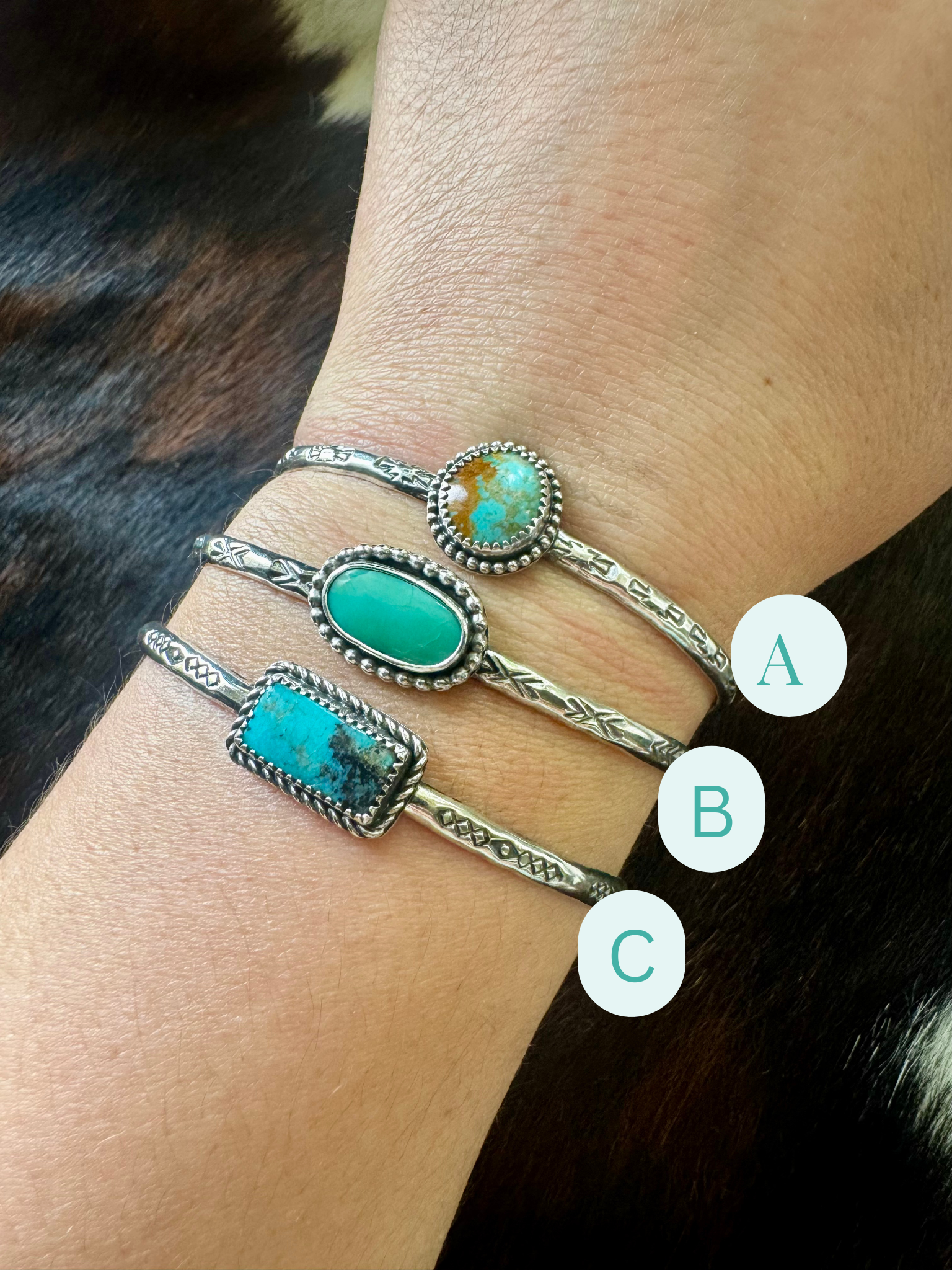 These cuffs are perfect for everyday wear. Sizes are measured from end to end. These cuffs have a lot of flex and can fit smaller or larger wrists.